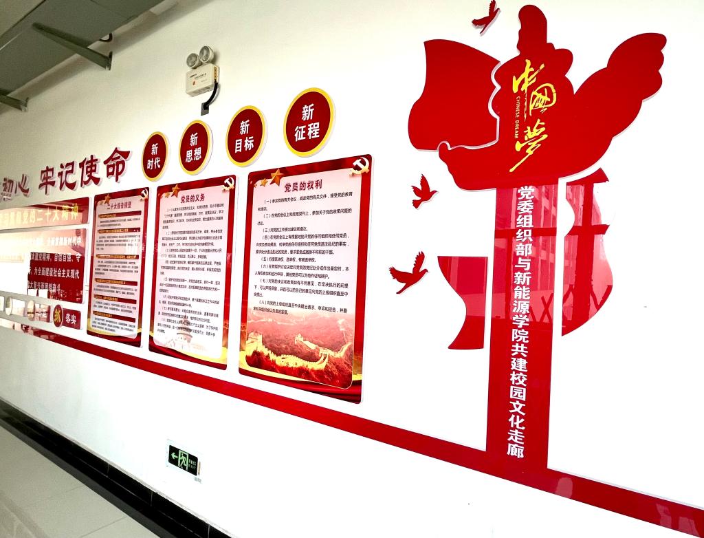 為進(jìn)一步加強(qiáng)學(xué)院文化建設(shè),夯實(shí)“黨建+學(xué)風(fēng)建設(shè)”創(chuàng)新模式,增強(qiáng)學(xué)生的學(xué)院榮譽(yù)感和自豪感,新能源學(xué)院在做好疫情防控工作的同時(shí),聚焦主責(zé)主業(yè),著力推進(jìn)文化建設(shè)。近期,新能源學(xué)院攜手黨委組織部在邑校區(qū)天工樓廣泛開展了黨建業(yè)務(wù)雙融合,同頻共振促發(fā)展黨建文化墻和學(xué)院標(biāo)識(shí)標(biāo)牌形象墻建設(shè)活動(dòng),為學(xué)院全體師生精心打造了旗幟鮮明講政治、突出特色有亮點(diǎn)的黨建文化墻,合理布局了低碳綠色顯特色、簡(jiǎn)潔大方接地氣的學(xué)院形象墻,充分挖掘?qū)W院文化育人新動(dòng)能,持續(xù)推動(dòng)學(xué)院文化建設(shè)再上新臺(tái)階。