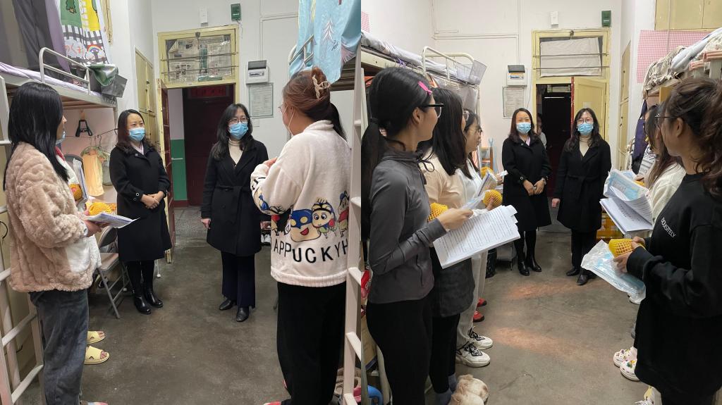 11月27日晚,院黨委書(shū)記田虹霞、副院長(zhǎng)劉輝一行,深入雁塔校區(qū)學(xué)生公寓看望慰問(wèn)在校研究生,了解學(xué)生面臨的實(shí)際困難,并為學(xué)生送去醫(yī)用口罩、蘋(píng)果等慰問(wèn)品。研2021級(jí)輔導(dǎo)員陶李陪同走訪。