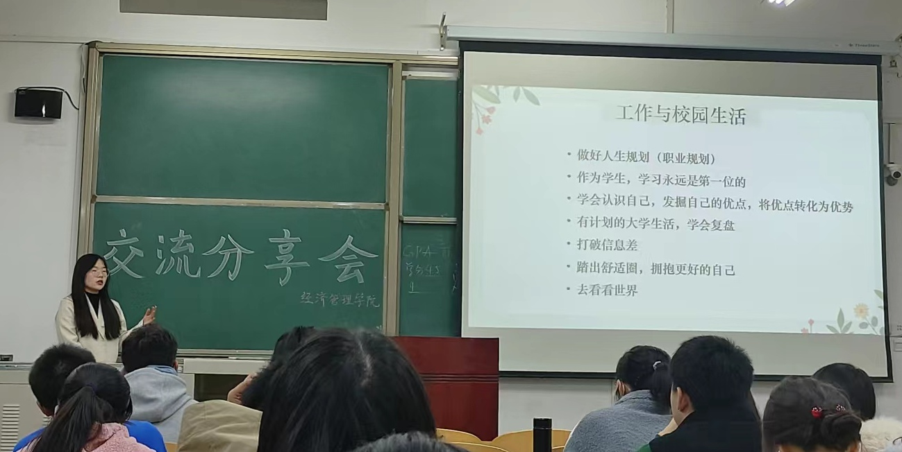 為進(jìn)一步加強(qiáng)學(xué)風(fēng)建設(shè),培育優(yōu)良學(xué)風(fēng),營(yíng)造良好學(xué)習(xí)氛圍,增強(qiáng)學(xué)生學(xué)習(xí)主動(dòng)性,強(qiáng)化朋輩幫扶,發(fā)揮榜樣力量,11月18日,經(jīng)濟(jì)管理學(xué)院在博覽樓7個(gè)教室開展學(xué)習(xí)經(jīng)驗(yàn)交流會(huì)。2020級(jí)、2021級(jí)17位學(xué)習(xí)成績(jī)優(yōu)異、綜合素質(zhì)突出的學(xué)生向2022級(jí)學(xué)生作經(jīng)驗(yàn)分享交流,學(xué)院2022級(jí)輔導(dǎo)員任仰、王業(yè)林參加會(huì)議。