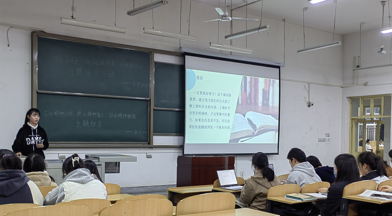 斯樂怡、張瑞同學(xué)分別從學(xué)習(xí)、證書、競(jìng)賽、活動(dòng)、生活等五個(gè)方面與大家進(jìn)行分享。學(xué)習(xí)方面,向大家展示了自己的學(xué)習(xí)成績(jī)與獲獎(jiǎng)證書,強(qiáng)調(diào)作為國(guó)貿(mào)專業(yè)學(xué)生,應(yīng)高度重視高數(shù)和英語學(xué)習(xí);證書方面,強(qiáng)調(diào)四六級(jí)的重要性及其他證書的考取事項(xiàng);競(jìng)賽方面,希望各位同學(xué)密切關(guān)注競(jìng)賽信息,多認(rèn)識(shí)優(yōu)秀學(xué)長(zhǎng)學(xué)姐,積極參加各項(xiàng)競(jìng)賽;活動(dòng)生活方面,建議同學(xué)們減少內(nèi)耗,提高效率,學(xué)會(huì)選擇。