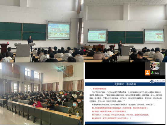 講座中,張益教授圍繞“生逢其時,舞臺寬廣”、“轉變角色,堅定方向”、“創(chuàng)新活動,追求卓越”三個方面進行了闡述。張教授講到,當今我國正處于“兩個一百年”奮斗目標的歷史交匯時期,迫切需要新一代青年將個人發(fā)展的黃金時期同“兩個一百年”奮斗目標關鍵期歷史性結合,施展才干,實現(xiàn)夢想。隨后,張教授從身份轉變、對知識的認識變化、時間的緊迫性上分析了研究生與本科生的學習差異,引導研究生主動轉變學習和思維方式,培養(yǎng)自主發(fā)現(xiàn)問題、分析問題、解決問題、總結問題的能力,提高科研與創(chuàng)新能力。最后,張教授希望研究生能以黨的二十大報告為方向標、動員令,擔當起黨和人民賦予的歷史重任,踐行“請黨放心,強國有我”的鏗鏘誓言,譜寫新時代的青春之歌。