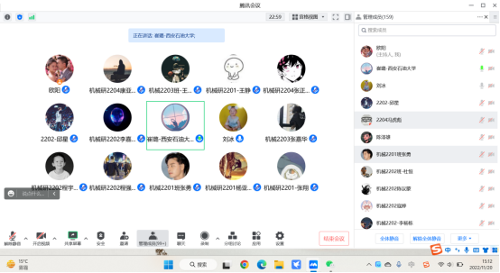 在全體研一學(xué)生線上座談會(huì)上,學(xué)院副院長(zhǎng)崔璐教授在聽取同學(xué)們各類意見建議之后,重點(diǎn)強(qiáng)調(diào)了科研激勵(lì)、成長(zhǎng)規(guī)劃、規(guī)矩意識(shí)三個(gè)方面。崔教授鼓勵(lì)同學(xué)們進(jìn)行學(xué)術(shù)型研究,積極參加各項(xiàng)學(xué)科競(jìng)賽,遇到問題及時(shí)與老師溝通,提高自身的科研能力。在成長(zhǎng)規(guī)劃方面,要求同學(xué)合理規(guī)劃學(xué)習(xí)和生活,明確自身目標(biāo)與方向,堅(jiān)定信念,過一個(gè)充實(shí)的校園生活;崔教授強(qiáng)調(diào),當(dāng)下西安疫情嚴(yán)重,對(duì)于一些同學(xué)的焦慮與煩躁情緒表示理解,同時(shí)也希望各位同學(xué)務(wù)必配合相關(guān)防疫政策與要求,積極響應(yīng)學(xué)校各方面的工作,培養(yǎng)自身規(guī)矩意識(shí),存在問題及時(shí)反映,為疫情的好轉(zhuǎn)貢獻(xiàn)力量。