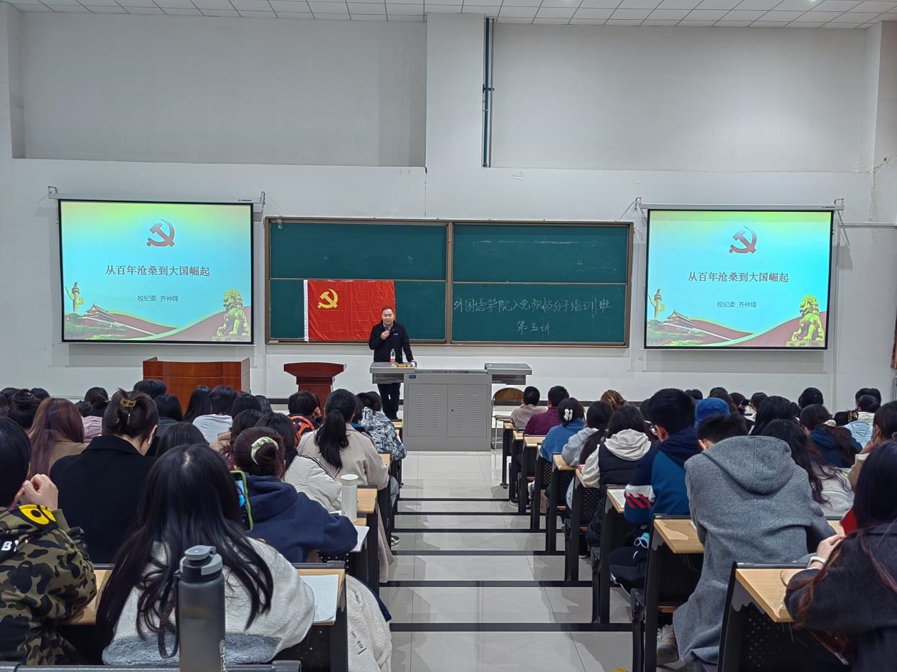 為增強入黨積極分子對黨的認識,了解黨的百年歷史,明確責任和使命,不斷提升綜合素質和能力。11月16日晚,外國語學院在鄠邑校區(qū)石工地科樓115教室舉行第11期入黨積極分子培訓班第五次集中授課。邀請校紀委副書記齊仲鋒擔任主講,學院黨委副書記王業(yè)青主持。