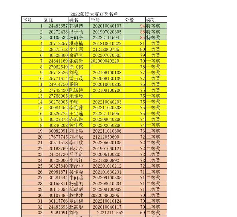 根據(jù)2022年“外研社·國(guó)才杯”全國(guó)英語閱讀大賽省級(jí)復(fù)賽的通知要求,我校外國(guó)語學(xué)院組織開展本次“語翼杯”英語閱讀大賽暨2022年“外研社·國(guó)才杯”英語系列比賽校園選拔賽初賽及復(fù)賽。因受疫情影響,本次大賽線上進(jìn)行。在外國(guó)語學(xué)院對(duì)本次賽事的大力宣傳下,各院系同學(xué)們積極踴躍地報(bào)名本次閱讀大賽,報(bào)名人數(shù)達(dá)到600人。外國(guó)語學(xué)院高度重視,負(fù)責(zé)老師積極組織安排選拔賽,經(jīng)過兩次嚴(yán)格的線上初賽選拔,參賽的492名同學(xué)中有91名同學(xué)進(jìn)入線下復(fù)賽,最終翻譯2001韓伊博,通信1903潘子旸和翻譯研2022湯雨亭等3名同學(xué)以優(yōu)異的成績(jī)脫穎而出獲得特等獎(jiǎng),英語2002洪德楠等15名同學(xué)獲得一等獎(jiǎng),勘探2203劉正昊等25名同學(xué)獲二等獎(jiǎng),英語2101胡雨桐等29名同學(xué)獲得三等獎(jiǎng)。其中三名獲得特等獎(jiǎng)同學(xué)將代表我校參加2022年11月5日舉行的“外研社·國(guó)才杯”全國(guó)大學(xué)生閱讀大賽陜西賽區(qū)的復(fù)賽和決賽。