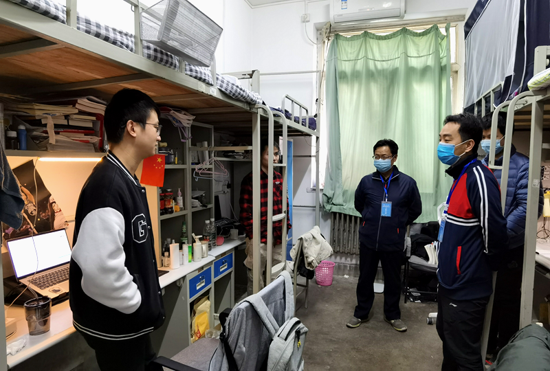 走訪中,學(xué)院領(lǐng)導(dǎo)、碩士研究生導(dǎo)師及輔導(dǎo)員與學(xué)生親切交談,深入了解疫情防控期間學(xué)生的學(xué)習(xí)、生活、思想及心理健康狀況,同時(shí)傳達(dá)了學(xué)校疫情防控要求,鼓勵(lì)大家樹立大局觀念,齊心協(xié)力,早日戰(zhàn)勝疫情。在看望每間宿舍同學(xué)的過程中,王魁生院長叮囑2020級研究生要多投簡歷,多參加面試,學(xué)習(xí)面試經(jīng)驗(yàn),并且也強(qiáng)調(diào)鑒于目前對畢業(yè)論文審核較為嚴(yán)格,要求同學(xué)們在求職期間也要兼顧學(xué)位論文的撰寫工作,確保在規(guī)定期限內(nèi)高質(zhì)量完成學(xué)位論文。同時(shí)他還囑咐2021級研究生要?jiǎng)谝萁Y(jié)合,掌握科學(xué)的學(xué)習(xí)方法,合理安排作息時(shí)間,閑暇之余多參加體育鍛煉,多參加學(xué)科競賽,提高自己的技能。張留美副院長提醒同學(xué)們要嚴(yán)格遵守學(xué)校疫情防控規(guī)定和要求,有困難第一時(shí)間跟老師、學(xué)院領(lǐng)導(dǎo)溝通,學(xué)院將全心全意為同學(xué)們做好服務(wù)和保障工作。