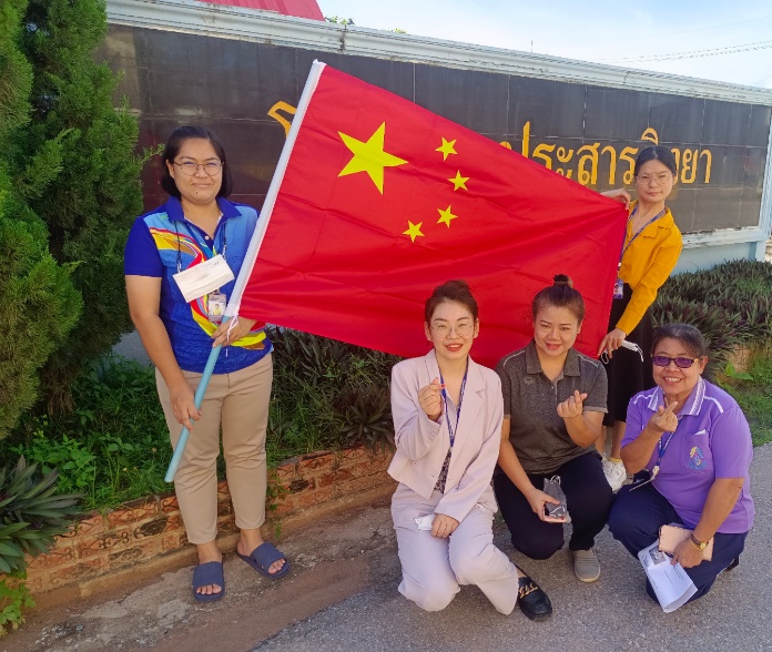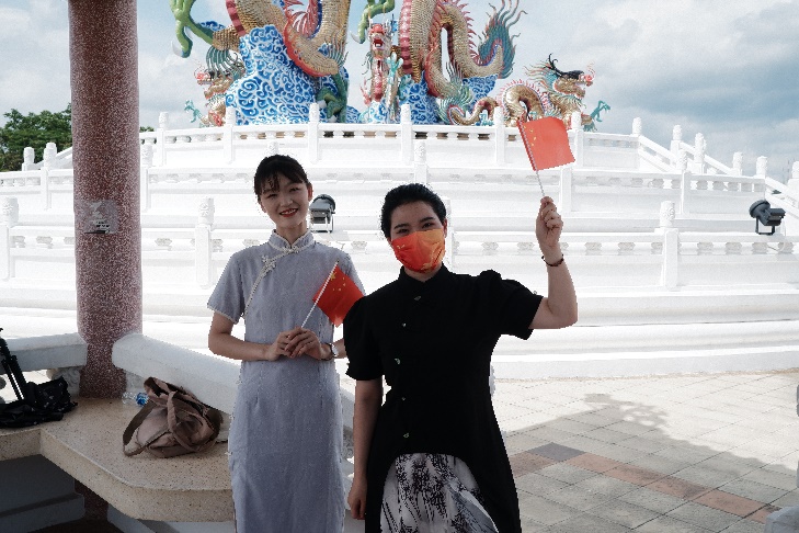 泰國(guó)蓬思里學(xué)校任教的漢語(yǔ)教師志愿者21級(jí)研究生陳悅、郭佳敏(下圖)同學(xué)遙祝偉大祖國(guó):中國(guó)母親73周年生日快樂,美麗富饒,風(fēng)調(diào)雨順,山河無(wú)恙,國(guó)泰民安