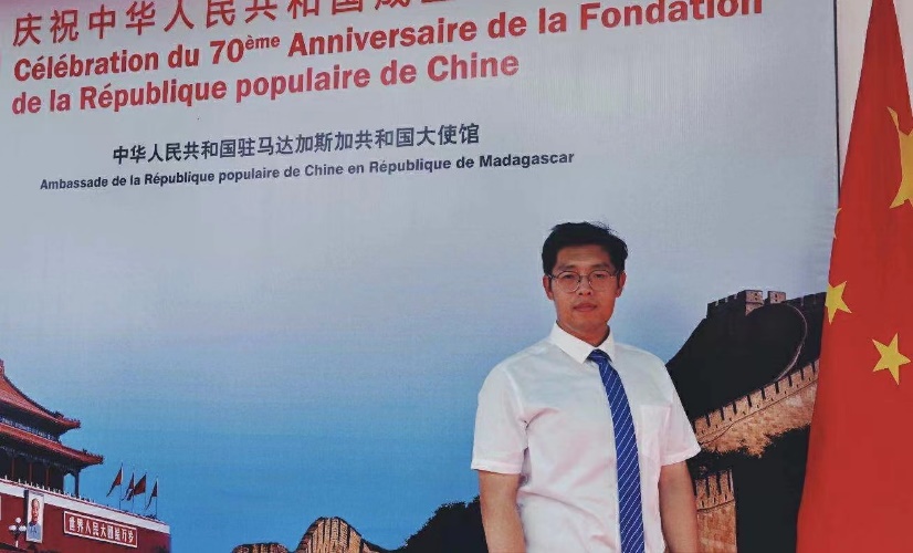 當(dāng)?shù)貢r(shí)間9月29日,中國(guó)駐馬達(dá)加斯加大使館隆重舉行慶祝中華人民共和國(guó)成立73周年招待會(huì)。參議長(zhǎng)、領(lǐng)土整治部長(zhǎng)兼執(zhí)政聯(lián)盟全國(guó)協(xié)調(diào)員、公安部長(zhǎng)、文化部長(zhǎng)等多位議會(huì)和政界政府高官、各界友好人士、各國(guó)及國(guó)際組織駐馬使節(jié)、中資機(jī)構(gòu)和華僑華人代表共250余人出席。塔那那利佛大學(xué)孔子學(xué)院中方院長(zhǎng)陳莉娟、外方院長(zhǎng)玉蘭、孔院顧問祖拉桑攜孔院師生六十余人參與并助力此次活動(dòng)的禮儀迎賓、書籍發(fā)放、文藝匯演及文藝節(jié)目主持等工作。人文學(xué)院2018級(jí)研究生武奇作為漢語(yǔ)教師志愿者負(fù)責(zé)該活動(dòng)的全程拍攝工作。武奇同學(xué)(下圖)從馬達(dá)加斯加遙祝新中國(guó)73周歲生日快樂,中馬建交50周年,中馬友誼長(zhǎng)存。