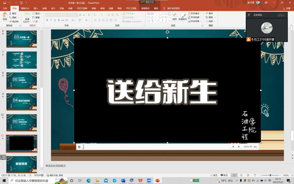 活動最后觀看了由各位學(xué)長學(xué)姐帶來的VCR,學(xué)長學(xué)姐們熱烈歡迎各位2022級新生來到西安石油大學(xué),希望他們能在這里度過有意義的四年。