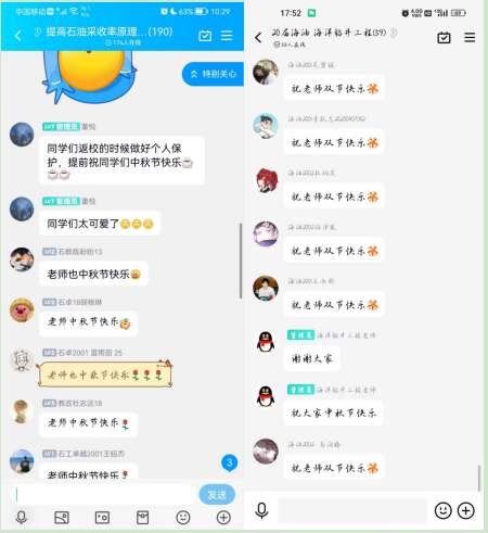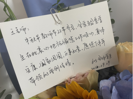 學院2022屆已就業(yè)研究生在就業(yè)單位錄上祝福視頻祝福母校老師;本科生在線上上課時,利用課間或下課時自發(fā)組織向老師送去送祝福。同學們在視頻上的每一幀,公屏上的每一句話,都充滿著對老師的敬意與祝福。同學們的祝福,老師們的感動匯合在一起,整個教師節(jié)充滿了溫馨的氣息。
