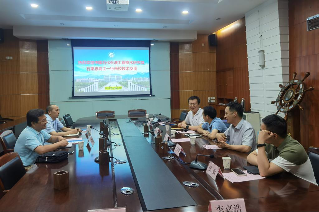 2022年8月3日下午,中國石化石油工程技術(shù)研究院專家石秉忠高級工程師一行2人來校就石油工程技術(shù)中的鉆井液科技研發(fā)進行交流座談。會議在雁塔校區(qū)會議中心第一會議室召開。我校石油工程學(xué)院、化學(xué)化工學(xué)院教師代表參加了會議。會議由科技處孫會珠副處長主持。