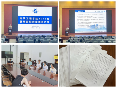 為切實做好暑期留校學生的安全教育工作,提高留校學生的安全防范意識,維護假期校園安全穩(wěn)定,電子工程學院各年級于7月4日下午召開暑期留校學生安全教育大會。會議分別由各年級輔導員主持,全體暑期留校學生共240余人參加會議。