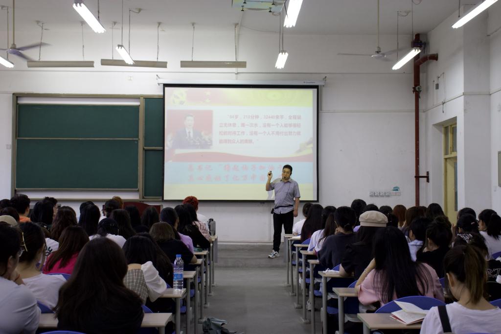 2022年6月14日上午,人文學(xué)院黨委書記余小勇在鄠邑校區(qū)博思樓102教室為學(xué)生講授了題為“回顧黨的十九大精神,迎接黨的二十大召開”的專題思政課,人文學(xué)院全體2021級新聞系和中文系學(xué)生參加。