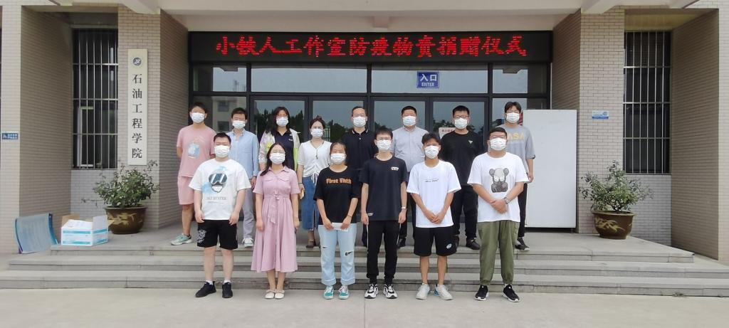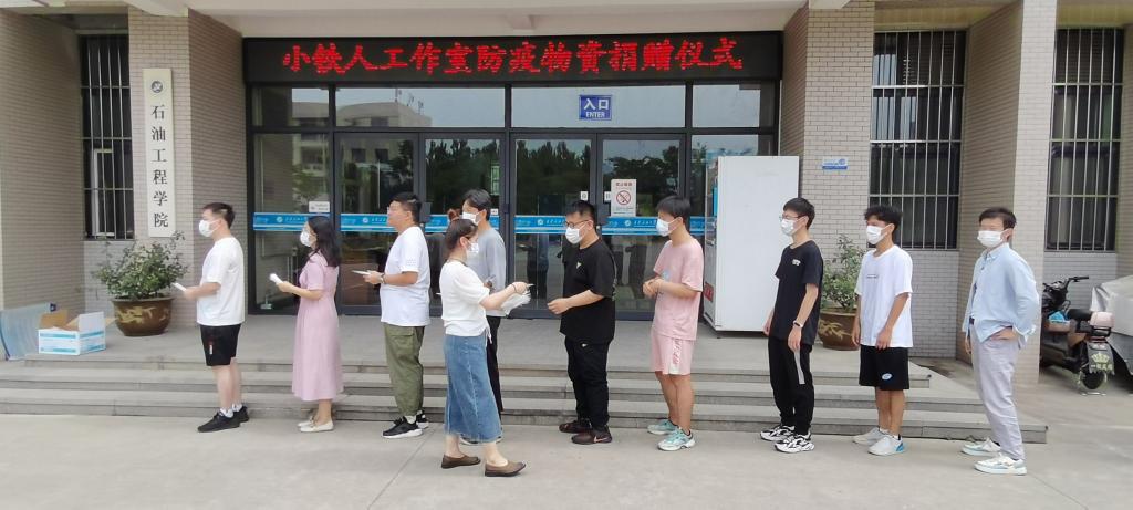 2022年6月9日上午10:00,小鐵人工作室防疫物資捐贈儀式在鄠邑校區(qū)開物樓南廣場舉行,石油工程學(xué)院黨委副書記張建高、學(xué)生工作辦公室主任朱戰(zhàn)威,全體輔導(dǎo)員、小鐵人工作室負(fù)責(zé)人張佳藝及部分學(xué)生代表參加。