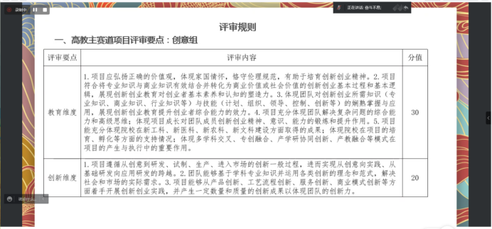 整場講座干貨滿滿,使參賽師生進一步了解評審規(guī)則,學(xué)會根據(jù)評審要點完善項目策劃書及PPT,各參賽團隊不斷突破自我、挖掘潛能,以更加完善的項目積極備賽!