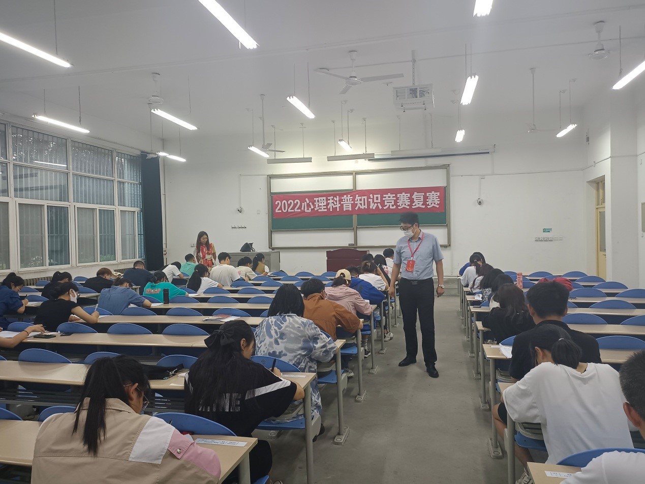 為進(jìn)一步落實(shí)我校第七屆“陽(yáng)光護(hù)航”心理育人季活動(dòng),引導(dǎo)廣大同學(xué)積極關(guān)注自身和他人的心理健康,學(xué)習(xí)和傳播心理健康知識(shí),提高同學(xué)們對(duì)心理健康的認(rèn)知水平,增加自助和朋輩互助能力,524日晚,西安石油大學(xué)2022年心理健康科普知識(shí)競(jìng)賽復(fù)賽同時(shí)在鄠邑校區(qū)B106和雁塔校區(qū)學(xué)生心理成長(zhǎng)指導(dǎo)中心舉行,兩邊分別由國(guó)際教育學(xué)院副院長(zhǎng)顏庭星和學(xué)生心理成長(zhǎng)指導(dǎo)中心主任肖瓊巡考,學(xué)生心理成長(zhǎng)指導(dǎo)中心教師魏曉言、焦文潔、研究生助理賀妍共同監(jiān)考。