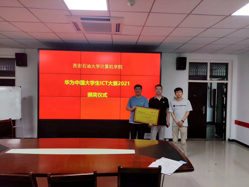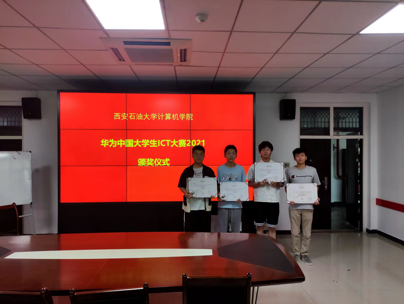 2022年5月24日,計算機學院在博知樓112會議室舉辦2021華為中國大學生ICT大賽頒獎儀式,學院黨委副書記龐遠、2019級輔導員王天航、2021級輔導員李路及本院參賽獲獎選手參加此次頒獎儀式。