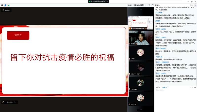 3月18日,我院組織2021級本科生通過線上會議的形式觀賞電影《雷鋒》(節(jié)選),同時邀請了兩名參加過志愿抗疫的青年志愿者,根據(jù)自己的親身經(jīng)歷講述了發(fā)生在我們身邊的抗疫故事,將雷鋒精神與抗疫精神相融合,引導同學們以積極的心態(tài)面對新冠肺炎疫情。