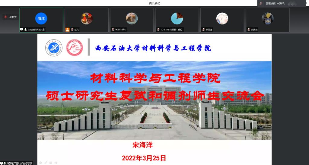 為了進(jìn)一步幫助考研過線同學(xué)明確方向、把握重點(diǎn)、堅(jiān)定信心,從容應(yīng)對(duì)研究生復(fù)試與調(diào)劑工作。325日上午,材料科學(xué)與工程學(xué)院舉辦了線上考研復(fù)試指導(dǎo)咨詢會(huì),本次會(huì)議特邀學(xué)院黨委書記、副院長、三級(jí)教授宋海洋老師擔(dān)任主講,70余名考研上線學(xué)生參會(huì)。會(huì)議由2018級(jí)輔導(dǎo)員趙飛老師主持。