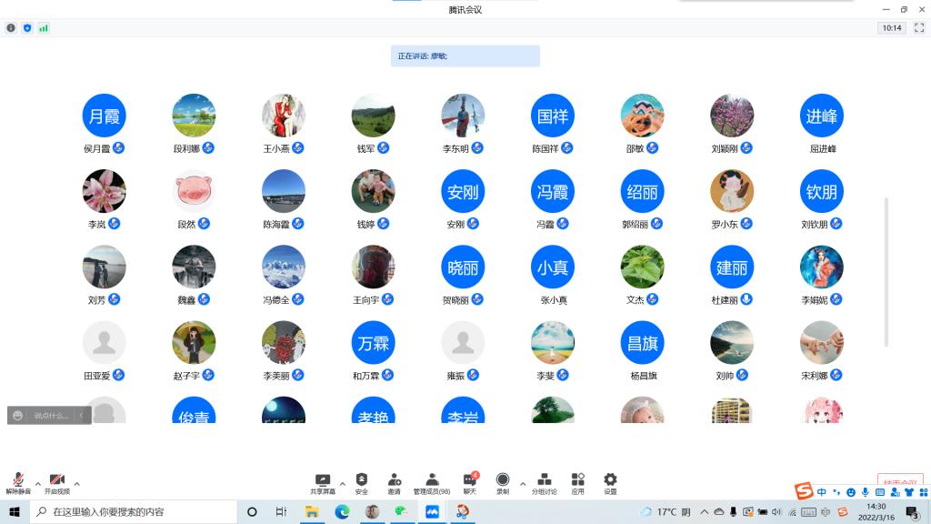 3月16日下午14:30,在疫情防控的要求下,理學(xué)院在騰訊會(huì)議中召開了線上全院教工大會(huì)。會(huì)議由學(xué)院黨委書記廖敏主持,全院教職工參加了本次大會(huì)。