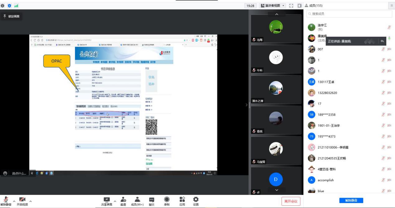 為強(qiáng)化學(xué)生科研能力的培養(yǎng),有助于畢業(yè)生開展畢業(yè)論文寫作,316日下午,圖書館參考咨詢部康美娟老師為同學(xué)們主講了數(shù)據(jù)庫(kù)應(yīng)用專題講座。基于疫情防控考慮,此次講座采取了線上形式,共有155名畢業(yè)生參加了講座。