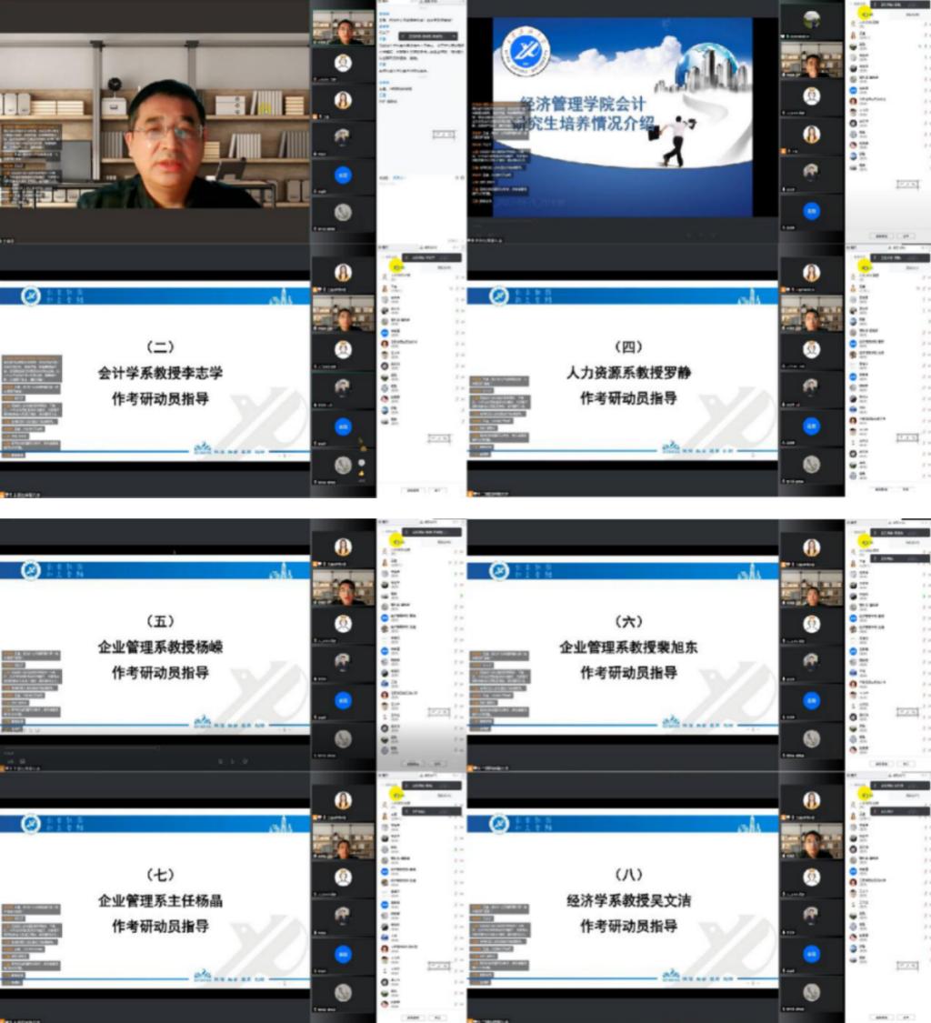 為提高2019級學生的考研熱情,幫助學生明確考研目標,科學掌握備考方法,1月15日,經濟管理學院以騰訊會議的形式舉辦2019級考研動員大會,經濟管理學院院長王君萍,經濟管理學院副院長吳勛、李俊亭,會計學系教授李志學,人力資源系教授羅靜,企業(yè)管理系教授楊嶸、裴旭東,企業(yè)管理系系主任楊晶,經濟學系教授吳文潔,經濟學系系主任李春霄,管理科學與工程系教授王小寧、副教授趙需要,管理科學與工程系系主任董鳴皋,2019級輔導員及全體意向考研學生參加會議,會議由經濟管理學院副院長李俊亭主持。