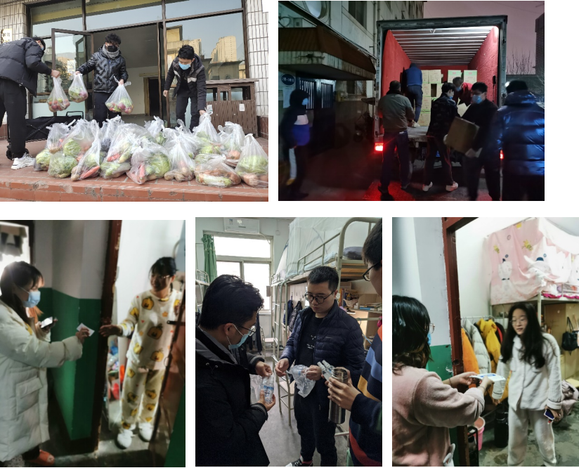 20211231日,我院研究生志愿者承擔(dān)了82000余戶蔬菜卸貨、分裝、配送工作,將蔬菜包第一時(shí)間送至學(xué)校及家屬院住戶家中。20221月1日,我院研究生志愿者又為給學(xué)校家屬院未分發(fā)完畢的住戶分發(fā)蔬菜;15日晚為學(xué)校家屬院居民分發(fā)米面油1000余戶。