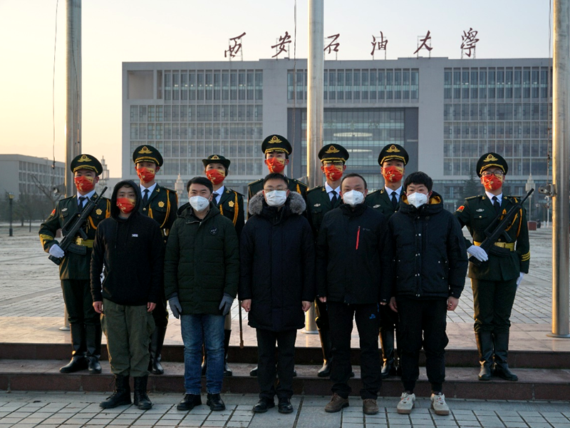 在結(jié)束讓人內(nèi)心震撼的元旦升旗的旗手任務(wù)之后,張峻宇繼續(xù)奔赴學(xué)校一線,參與了由退伍大學(xué)生組成的“學(xué)生疫情防控糾察隊(duì)”,不知疲倦地奉獻(xiàn)著自己?!拔覀円獙?duì)得起身上的這身禮服,對(duì)得起自己宣誓的那面國(guó)旗,對(duì)得起自己‘護(hù)我國(guó)旗,壯我國(guó)威’的誓言?!庇辛诉@誓言,天再冷,病毒再可怕,我們都始終相信,西石大必勝,西安必勝。