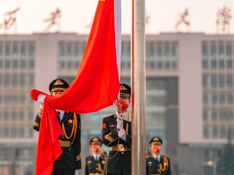 張峻宇(后排左四)圓滿完成2022年元旦升旗任務(wù)