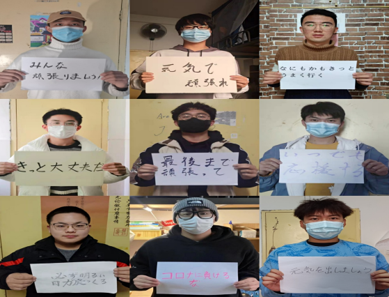 疫情當(dāng)前,在這場沒有硝煙的戰(zhàn)爭中,一幕幕動人的畫面,一個個感人的故事,凝聚了無堅(jiān)不摧的中國力量,詮釋了逆行而上的中國精神。這樣的中國力量,需要廣大青年大學(xué)生傳承和發(fā)揚(yáng)光大。陳旭老師給學(xué)生布置的本堂課課后作業(yè)也是從“西安疫情”這一特殊背景出發(fā),讓同學(xué)們結(jié)合本堂課所學(xué)“表示感嘆”和“表示贊嘆”的句型及生詞,每個人用日語來說一句加油打氣的話,并且親手制作加油打氣的卡片。一方面展現(xiàn)我校學(xué)子在疫情期間仍然積極面對這一良好的精神風(fēng)貌,同時也用到所學(xué)語言知識,為身邊的人加油打氣,傳遞正能量。