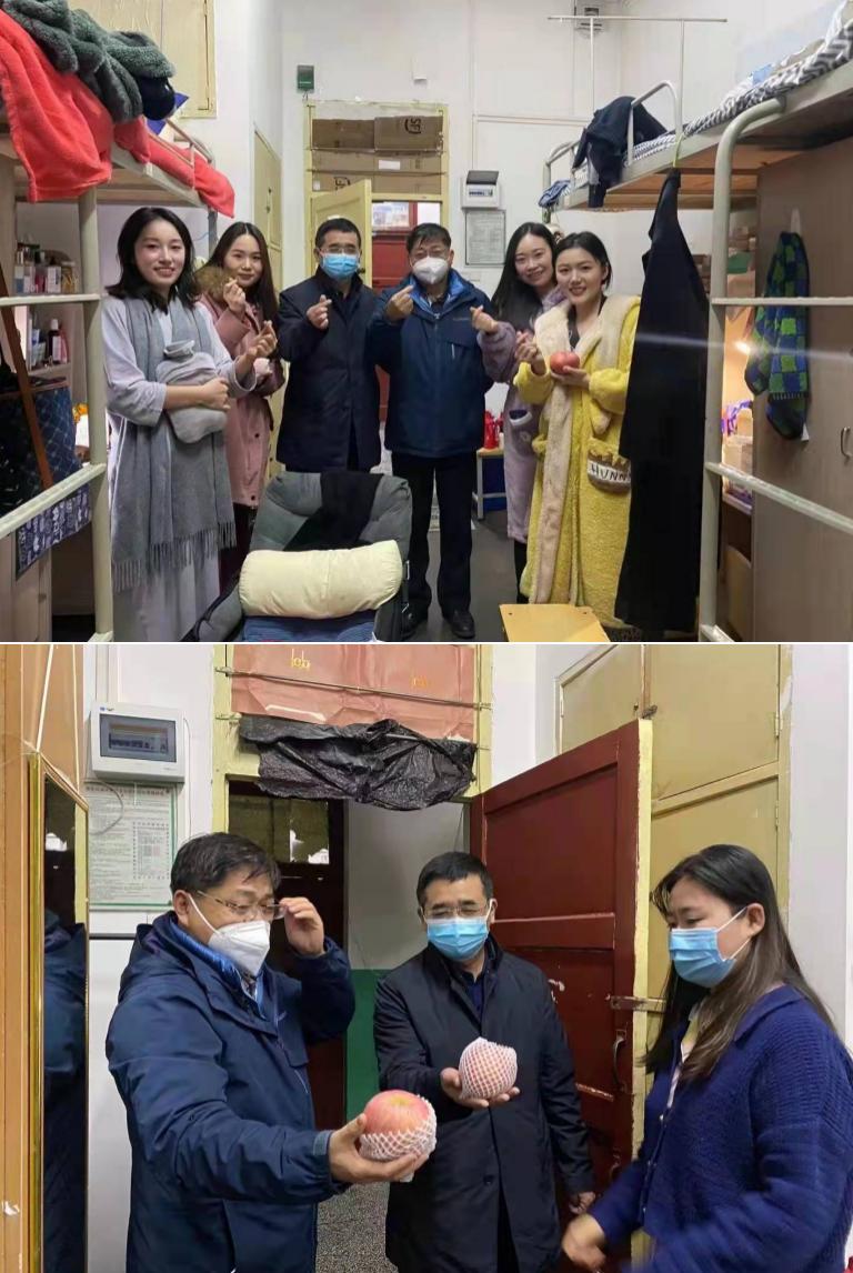 新年的鐘聲如約而至地敲響,面臨疫情,廣大同學(xué)只能在宿舍度過這個特殊的新年。越是佳節(jié)倍思親,學(xué)校堅(jiān)持以生為本,突出關(guān)心關(guān)愛,在新年來臨之際,學(xué)校各級領(lǐng)導(dǎo)和老師主動深入學(xué)生宿舍,送上新年禮物,與同學(xué)面對面溝通近況,了解大家的所思所感所求,為大家傳遞溫暖與祝福。
