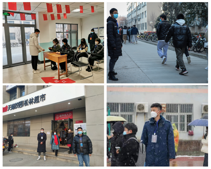 在宿舍樓內(nèi),志愿者們認真核對每一位同學的出入證、洗澡預約憑證,發(fā)放洗浴票,耐心解答同學們的問題和困惑;在食堂和超市門口,志愿者們認真執(zhí)勤,時刻注意提醒就餐、購物人員佩戴好口罩、保持好距離,用心維持秩序,落實就餐、購物要求;在核酸檢測過程中,志愿者們在公寓樓將同學們逐層帶出整隊,做完核酸檢測后全員帶回,秩序井然。3名退伍士兵志愿者積極參與核酸檢測現(xiàn)場秩序維護和引導工作,堅持傳承軍隊優(yōu)良作風,保持“退伍不褪色”的軍人本色,在新的“戰(zhàn)場”上彰顯人生價值。
