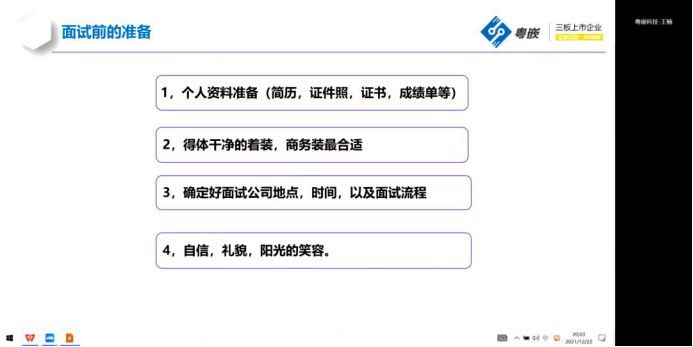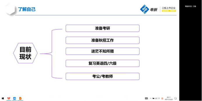 12月22日晚,由創(chuàng)新創(chuàng)業(yè)中心主辦的西安石油大學(xué)2021年大學(xué)生創(chuàng)新創(chuàng)業(yè)訓(xùn)練營第十講順利開課。本次課程的主題是《互聯(lián)網(wǎng)職業(yè)規(guī)劃及就業(yè)創(chuàng)業(yè)分享》,由廣州粵嵌通信科技股份有限共公司西安分公司校企合作總監(jiān)、大數(shù)據(jù)高級工程師王楠老師主講,訓(xùn)練營全體學(xué)員參加了學(xué)習(xí)。