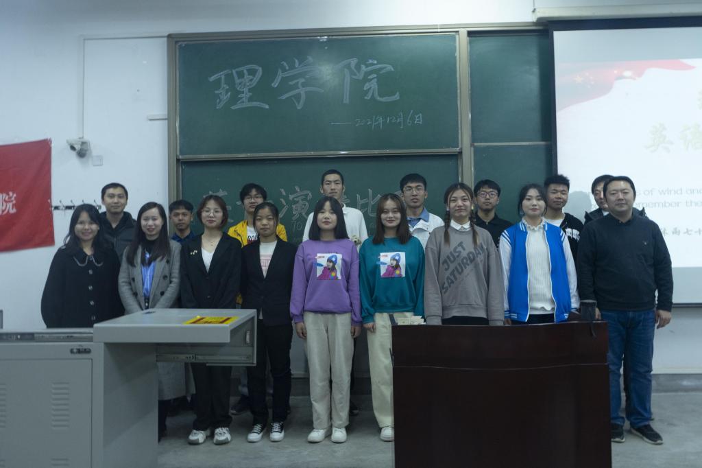 為進一步加強學風建設,提高同學們英語學習的積極性,營造濃郁英語學習氛圍,理學院于12月6號晚在鄠邑校區(qū)博思樓114教室舉行了以“櫛風沐雨七十載,飲水思源銘校恩”為主題的英語演講比賽。理學院黨委副書記馬小剛出席并講話,學生工作辦公室主任丁亦喆、輔導員林曄、計算機學院輔導員姜楠、李路老師擔任此次比賽評委,理學院近200名學生參加本次活動。