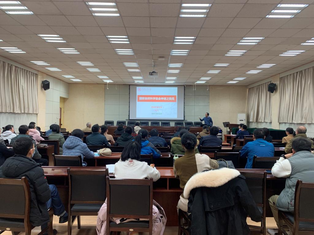 報告會上,馬飛教授結(jié)合多年國家自然科學基金申報工作的經(jīng)驗,分析了當前國家自然科學基金工作面臨的形勢、機遇和挑戰(zhàn)。他指出,申報的老師們要領會申請指南、突出創(chuàng)新點、體現(xiàn)特色、科學制定研究計劃,進一步凝煉申請書。此外他還對申報書撰寫的一些核心問題進行了解析,強調(diào)“好的申報書是反復修改出來的”,需要大量閱讀參考資料,要緊跟國家重大需求,結(jié)合研究方向,凝練科學問題。在撰寫過程中多溝通、多請教專家教授,反復打磨,注重文字規(guī)范,高度凝練,精雕細琢。