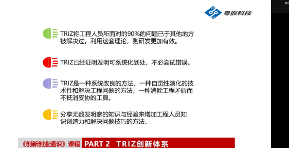 本次課程由粵嵌科技全國運營項目項目經(jīng)理蔡佳祥主講,他從“傳統(tǒng)創(chuàng)新方法、TRIZ創(chuàng)新體系、TRIZ發(fā)明與創(chuàng)新規(guī)則、TRIZ原理與方法”四個方面,“產(chǎn)品設(shè)計及生產(chǎn)”兩個維度對創(chuàng)新思維進行講解,并在傳統(tǒng)創(chuàng)新理論的基礎(chǔ)上對TRIZ理論進行講解和闡述。