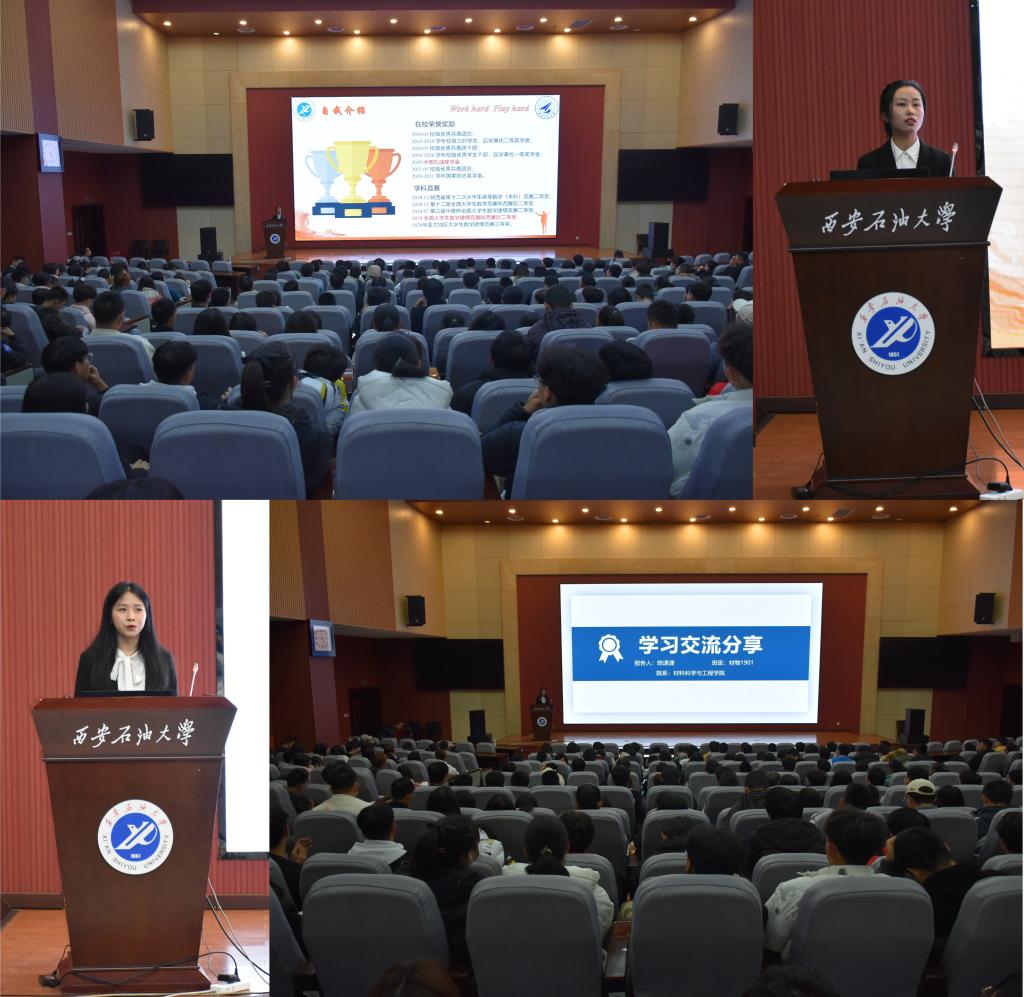 為進(jìn)一步加強(qiáng)本科生班級(jí)建設(shè),提升學(xué)生干部在班級(jí)建設(shè)的作用,充分發(fā)揮優(yōu)秀大學(xué)生榜樣示范力量,在班級(jí)內(nèi)部營(yíng)造積極向上的優(yōu)良學(xué)風(fēng),繼承我?!氨葘W(xué)趕幫超”的優(yōu)良學(xué)習(xí)氛圍,1125日下午,材料科學(xué)與工程學(xué)院 “感恩教育大會(huì)”暨第二期優(yōu)秀學(xué)子論壇在鄠邑校區(qū)弘石報(bào)告廳舉行,學(xué)院黨委副書(shū)記張?jiān)谱嗽诖髸?huì)上為2021級(jí)學(xué)生做感恩教育,并強(qiáng)調(diào)了班級(jí)建設(shè)、優(yōu)良學(xué)風(fēng)建設(shè)的重要意義。同時(shí),學(xué)院邀請(qǐng)材物1801班李思瀾、材物1901班陳瀟瀟兩位優(yōu)秀學(xué)子作報(bào)告。學(xué)院2021級(jí)輔導(dǎo)員岳東東、2019級(jí)輔導(dǎo)員王金龍參加此次報(bào)告會(huì),2021級(jí)全體本科生、其它年級(jí)班委代表與團(tuán)委、學(xué)生會(huì)主要學(xué)生干部參會(huì)。