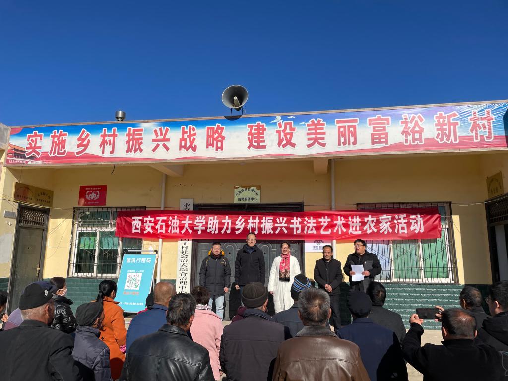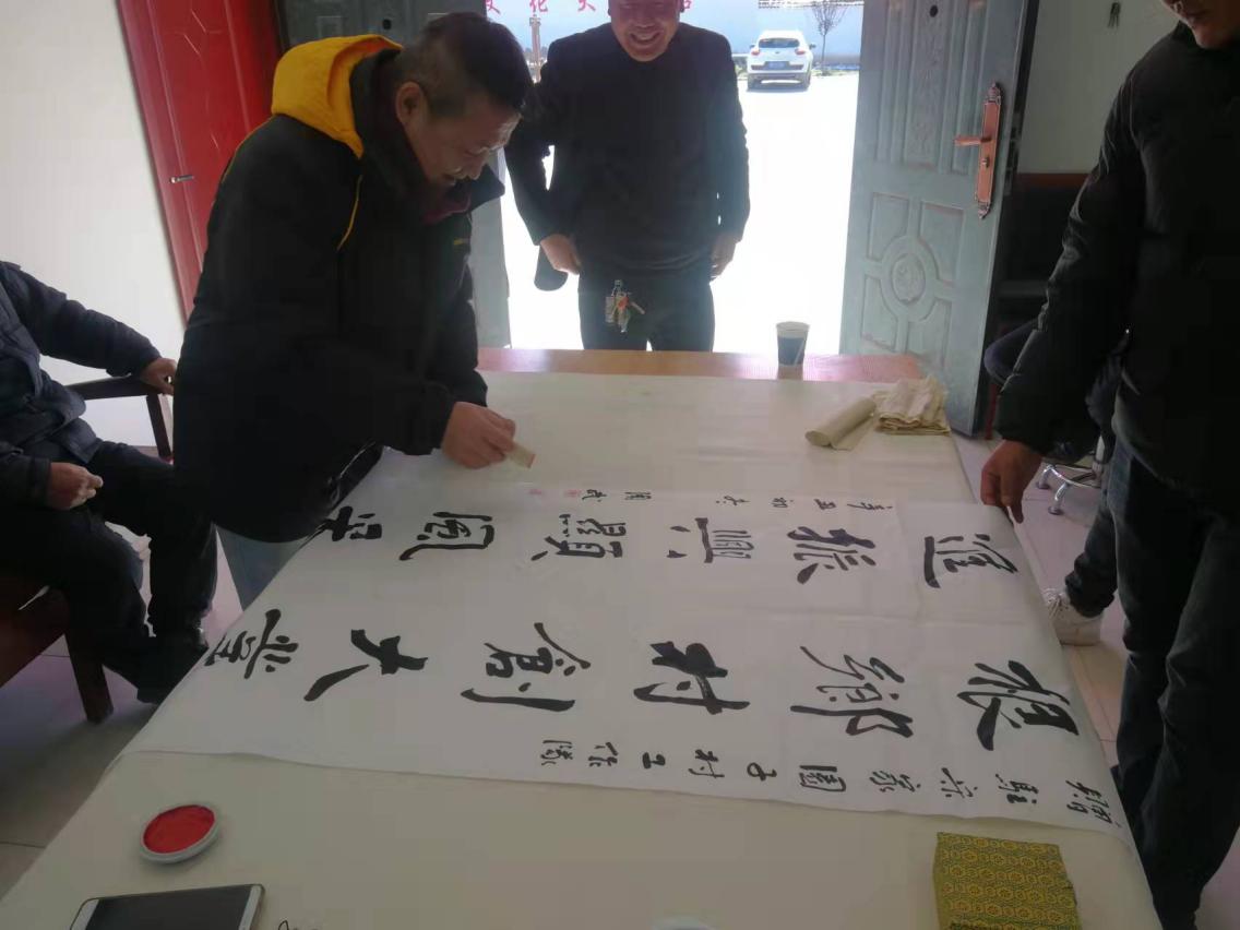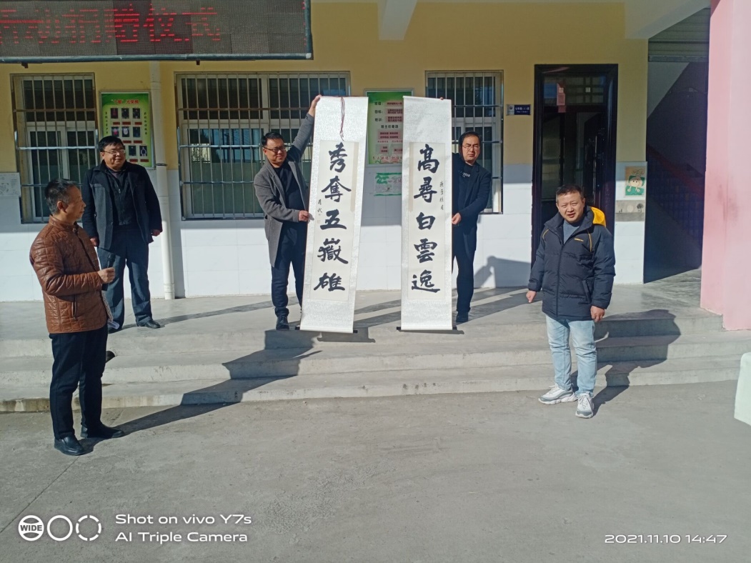 弘揚優(yōu)秀傳統(tǒng)文化是鄉(xiāng)村振興的必然要求,實施鄉(xiāng)村振興戰(zhàn)略,就要深入到田間地頭,傳播農耕文化蘊含的優(yōu)秀思想觀念、人文精神、道德規(guī)范,提高人民群眾的道德水準和文明程度,大力倡導社會主義核心價值觀,激發(fā)勞動人民的創(chuàng)業(yè)熱情和創(chuàng)新活力,筑牢人民共同團結奮進的思想基礎。料峭冬日,暖意融融,11月10日,西安石油大學工會袁玎主席、劉陜軍副主席帶領工會同志先后前往永壽縣馬坊鎮(zhèn)宋家園子村和馬坊中學開展書法藝術進農家和書法藝術進校園活動。