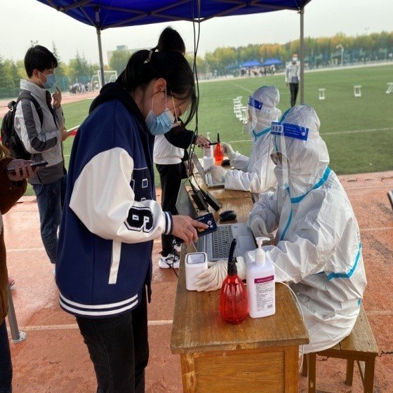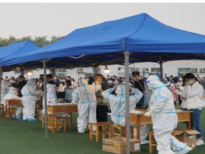 三是聞令而動,全力投入兩校區(qū)全員和重點人群的核酸采集等有關(guān)工作。在核酸檢測工作中,校醫(yī)院承擔著雁塔校區(qū)全員核酸檢測的采樣、鄠邑校區(qū)全員核酸檢測的身份核驗及部分特殊人群的采樣工作等任務。每次在接到關(guān)于開展全員核酸檢測的緊急通知后,校醫(yī)院與時間賽跑,從布置場地、準備設(shè)備物資、組建核酸檢測采樣隊,做到了反應迅速,及時有序到位。采集實施過程中,校醫(yī)院醫(yī)護人員嚴格落實個人防護措施,采樣操作規(guī)范,確保了樣本質(zhì)量。截至目前,校醫(yī)院共派出核酸采樣醫(yī)務人員200余人次,累計采集師生樣本近50000多人份,重點人群500余人份。