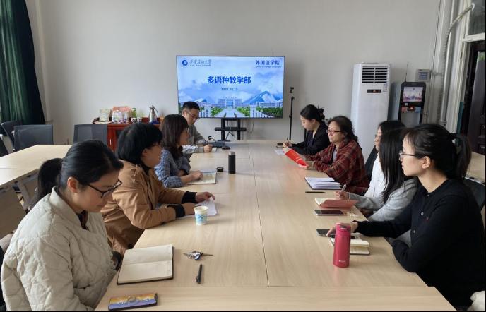 多語種教學部副主任陳旭老師介紹了多語種教學部的基本情況,要求各位教師積極擴寬視野,將課程思政知識融入語言課程,積極開設相關的通識教育選修課,為教學和科研打好基礎;要踴躍嘗試,跳出舒適圈,扎實開展科研工作,踴躍參加競賽。他表示,多語種教學部將積極研究形成有效的考核及鼓勵機制,充分調(diào)動每位教師的積極性和創(chuàng)造力。與會教師就多語種教師教學、科研、競賽以及未來個人發(fā)展方向、學院建設等多方面的內(nèi)容展開了激烈的討論,提出了自己的意見和建議。