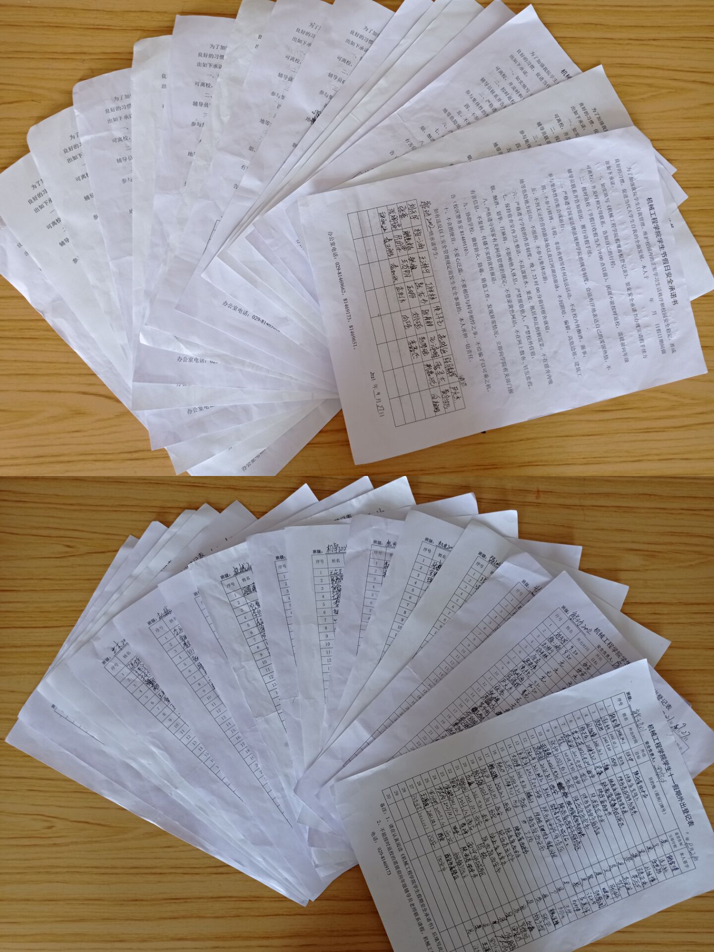 各年級(jí)均以班為單位簽訂了《2021年國(guó)慶假期去向登記表暨安全承諾書》。