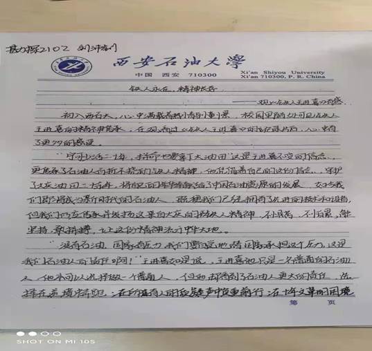 理想信念教育不僅是培養(yǎng)中國特色社會主義事業(yè)建設(shè)者和接班人的時代要求,更是實現(xiàn)中華民族偉大復(fù)興中國夢的迫切需要,大一新生理想信念教育是引導(dǎo)、激勵、凝聚大學(xué)生成長成才的重要抓手,是系好人生第一粒扣子的關(guān)鍵環(huán)節(jié)。我院新生理想信念教育以“鐵人精神”教育為主要切入點,在B區(qū)教學(xué)樓組織新生開展了《鐵人王進喜》的觀影活動,并積極組織撰寫了心得體會;黨委書記馬行天在鄠邑校區(qū)弘石報告廳為新生做了“堅定理想信息,做好大學(xué)規(guī)劃”的主題講座;黨委副書記王瑩在弘石報告廳向新生做了學(xué)校發(fā)展歷程和學(xué)院優(yōu)良傳統(tǒng)的主題報告,經(jīng)過理想信念教育,同學(xué)們逐漸明白要將小我融入祖國和人民的大我之中,才會更好的實現(xiàn)人生價值。