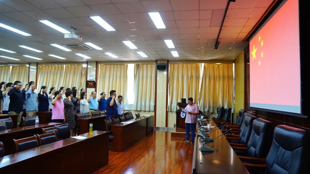 隨后,張偉書(shū)記帶領(lǐng)全體思政課教師面對(duì)國(guó)旗進(jìn)行集體宣誓承諾,重溫師德規(guī)范,體悟思政課教師的光榮與使命。與會(huì)教師一致表示,要增強(qiáng)“四個(gè)意識(shí)”,堅(jiān)定“四個(gè)自信”,做到“兩個(gè)維護(hù)”,按照“六要”要求做“四有”好老師,在立德樹(shù)人的崗位上用習(xí)近平新時(shí)代中國(guó)特色社會(huì)主義思想鑄魂育人,努力培養(yǎng)擔(dān)當(dāng)民族復(fù)興大任的時(shí)代新人,培養(yǎng)德智體美勞全面發(fā)展的社會(huì)主義建設(shè)者和接班人。