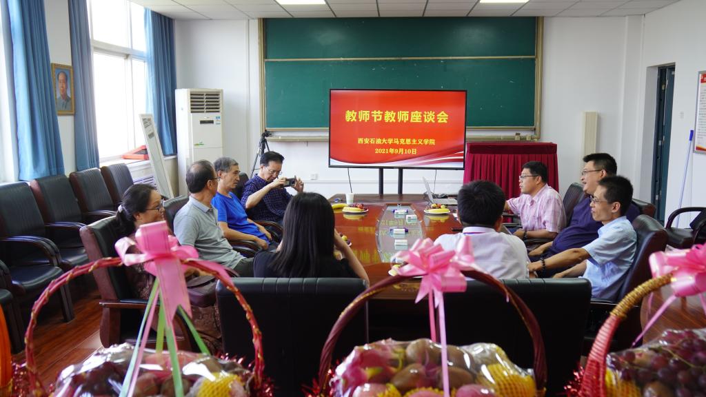 會(huì)后,馬克思主義學(xué)院邀請(qǐng)近幾年退休的5位老教師在1號(hào)教學(xué)樓818會(huì)議室召開(kāi)了教師節(jié)教師座談會(huì),學(xué)院領(lǐng)導(dǎo)班子、工會(huì)主席、在職教師代表共10余人參加了會(huì)議。座談會(huì)上,學(xué)院領(lǐng)導(dǎo)班子祝老教師教師節(jié)快樂(lè),對(duì)他們?yōu)閷W(xué)院發(fā)展做出的貢獻(xiàn)表示感謝,希望他們身體健康,生活幸福。與會(huì)老教師對(duì)馬克思主義學(xué)院年輕一屆領(lǐng)導(dǎo)班子帶領(lǐng)學(xué)院蒸蒸日上取得的工作成績(jī)表示祝賀,感謝學(xué)院在教師節(jié)這個(gè)特殊的日子以座談會(huì)的形式對(duì)退休老教師的關(guān)心,表示會(huì)繼續(xù)發(fā)揮余熱,并祝愿馬克思主義學(xué)院越來(lái)越好!