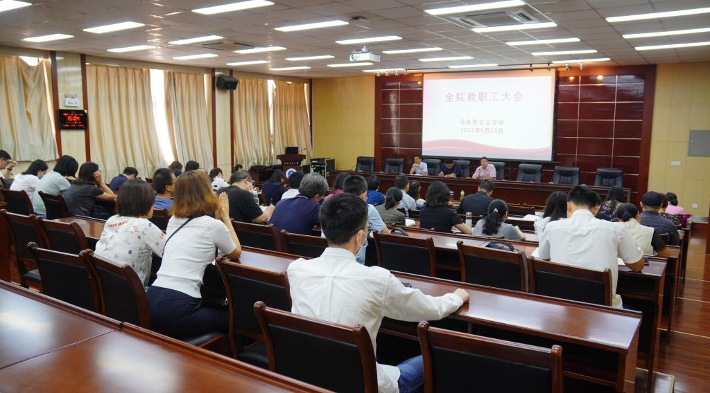 9月10日下午,為慶祝第37個(gè)教師節(jié),馬克思主義學(xué)院在雁塔校區(qū)會(huì)議中心第五會(huì)議室召開(kāi)全院教職工大會(huì),開(kāi)展“賡續(xù)百年初心 擔(dān)當(dāng)育人使命”主題師德師風(fēng)建設(shè)暨教師宣誓承諾活動(dòng)。學(xué)院黨總支書(shū)記張偉主持會(huì)議,學(xué)院領(lǐng)導(dǎo)班子及全體教職工共50余人參加。