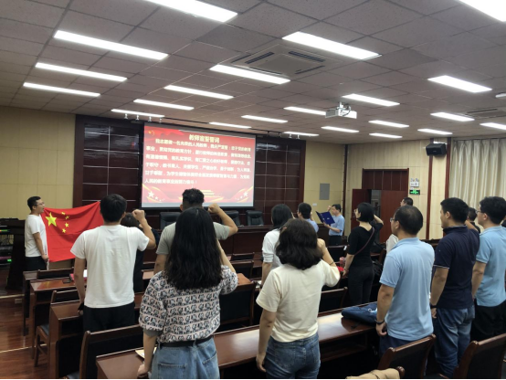 隨后,在學(xué)院黨委書記蔡建文的帶領(lǐng)下,全體教職工面對國旗開展教師宣誓承諾活動(dòng),鄭重宣誓:志愿做一名光榮的人民教師,我莊嚴(yán)宣誓:忠黨的教育事業(yè),貫徹黨的教育方針,履行教師的神圣職責(zé),做有理想信念、有道德情操、有扎實(shí)學(xué)識、有仁愛之心的好老師,愛國守法、忠于職守,教書育人、關(guān)愛學(xué)生,嚴(yán)謹(jǐn)治學(xué)、勇于創(chuàng)新,為人師表、甘于奉獻(xiàn),為學(xué)生德智體美勞全面發(fā)展奉獻(xiàn)智慧與力量,為黨和人民的教育事業(yè)而努力奮斗!用鏗鏘有力的聲音許下自己的堅(jiān)定承諾!