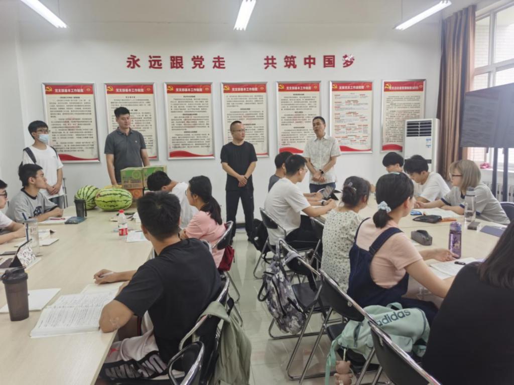 王宏衛(wèi)書記代表學院向暑期留校復習考研學生表示慰問,希望大家傳承“好學力行、自強不息”的校訓,勤奮好學、身體力行,剛毅堅卓、發(fā)憤圖強。一是要合理安排時間,認真復習備考,把握生活節(jié)奏,注重勞逸結(jié)合,提高學習效率;二是要嚴格遵守假期留校學生管理要求,執(zhí)行疫情防控各項規(guī)定,樹立安全意識,守好安全底線;三是要堅持學習并保持自律,高效合理利用暑假時間,經(jīng)得住壓力、耐得起寂寞,風雨兼程,全力以赴,朝著既定目標奮勇前行。王剛副書記希望大家端正心態(tài)、樹立信心,注重策略、提高技巧,明確目標、堅持到底,叮囑大家注意寢室、飲食、交通安全,祝愿大家取得優(yōu)異成績。隨后,老師們?yōu)橥瑢W們送上了西瓜、飲料、牛奶等慰問品,為備考學生帶來了絲絲清涼、溫情關(guān)心和無限鼓勵。