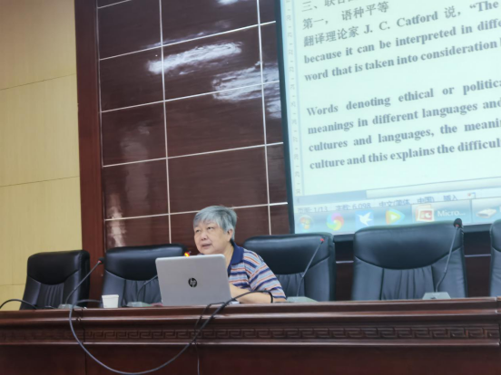 徐老師旁征博引,以豐富的經(jīng)驗和生動的例證展示了聯(lián)合國文件中詞匯的感情色彩、文件的政治敏感度和法律用詞的嚴謹,揭開了聯(lián)合國翻譯的神秘面紗,讓在場師生深深感受到了聯(lián)合國文件翻譯的挑戰(zhàn)和樂趣。