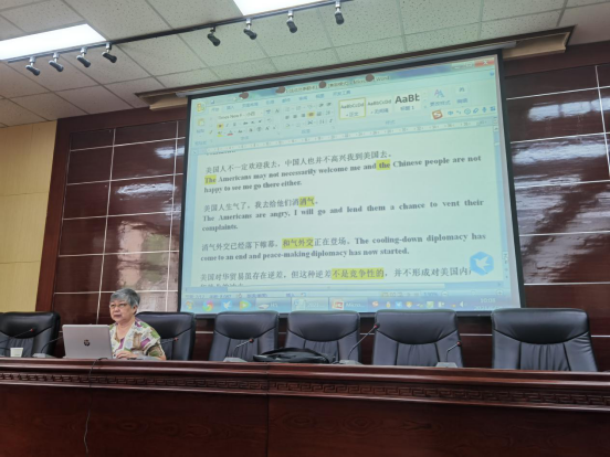 為慶祝學(xué)校建校70周年,加強(qiáng)學(xué)術(shù)交流,促進(jìn)學(xué)科發(fā)展,我院組織了系列學(xué)術(shù)講座活動(dòng),特邀請(qǐng)前外交部翻譯室主任徐亞男老師于6月25日上午在雁塔校區(qū)第五會(huì)議室舉辦題為“淺談外事翻譯”的專題報(bào)告會(huì)。院長(zhǎng)于艷英、副院長(zhǎng)劉輝、陳武及全體師生參加了講座,講座由劉輝副院長(zhǎng)主持。