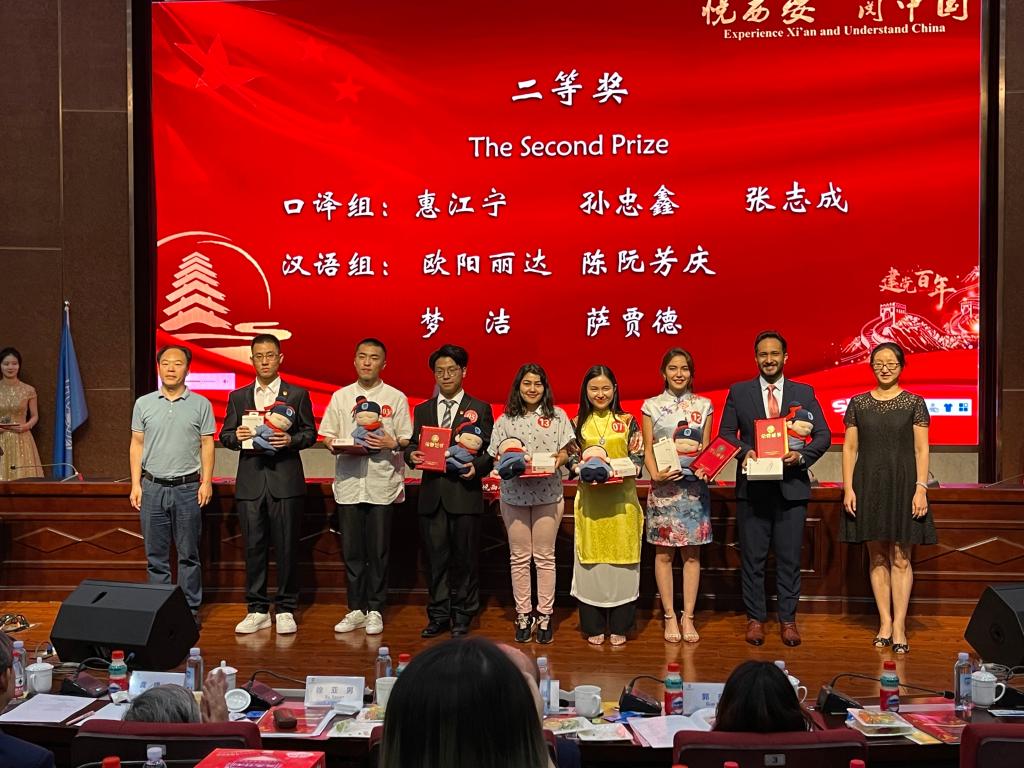 6月27日上午,“2021年西安市‘悅西安 閱中國(guó)’(Experience Xi'an and Understand China)講中國(guó)故事演講比賽暨外事口譯大賽”決賽在西安外國(guó)語(yǔ)大學(xué)長(zhǎng)安校區(qū)順利舉行。我校巴基斯坦留學(xué)生薩賈德成功晉級(jí)決賽并榮獲二等獎(jiǎng),劉穎穎老師獲評(píng)優(yōu)秀指導(dǎo)教師,我校獲優(yōu)秀組織獎(jiǎng)。