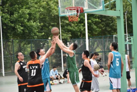 本次比賽由教師代表組成的教職工隊和學生代表組成的畢業(yè)生隊進行比拼。比賽開始前,雙方隊員各自聚在一起商量戰(zhàn)術(shù)。伴著主裁判的一聲哨響,比賽正式開始。畢業(yè)生隊首先憑借著強大的籃板優(yōu)勢和靈活的突破能力,嫻熟地完成了搶板、控球、快攻、三步上籃等一系列進攻動作,暫時領(lǐng)先。教職工隊的老師們奮起直追,憑著靈活的運球、良好的配合、精準的投籃,博得了觀賽同學們的陣陣喝彩。賽程接近尾聲師生們?nèi)砸猹q未盡,最終教職工隊以113:85贏得勝利。